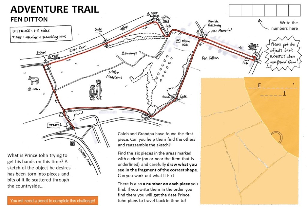 Quick! Head out to Fen Ditton with your family and follow the adventure trail below. Use the map to find the clues and maybe we’ll work it out in time to put a stop to Prince John’s latest scheme!