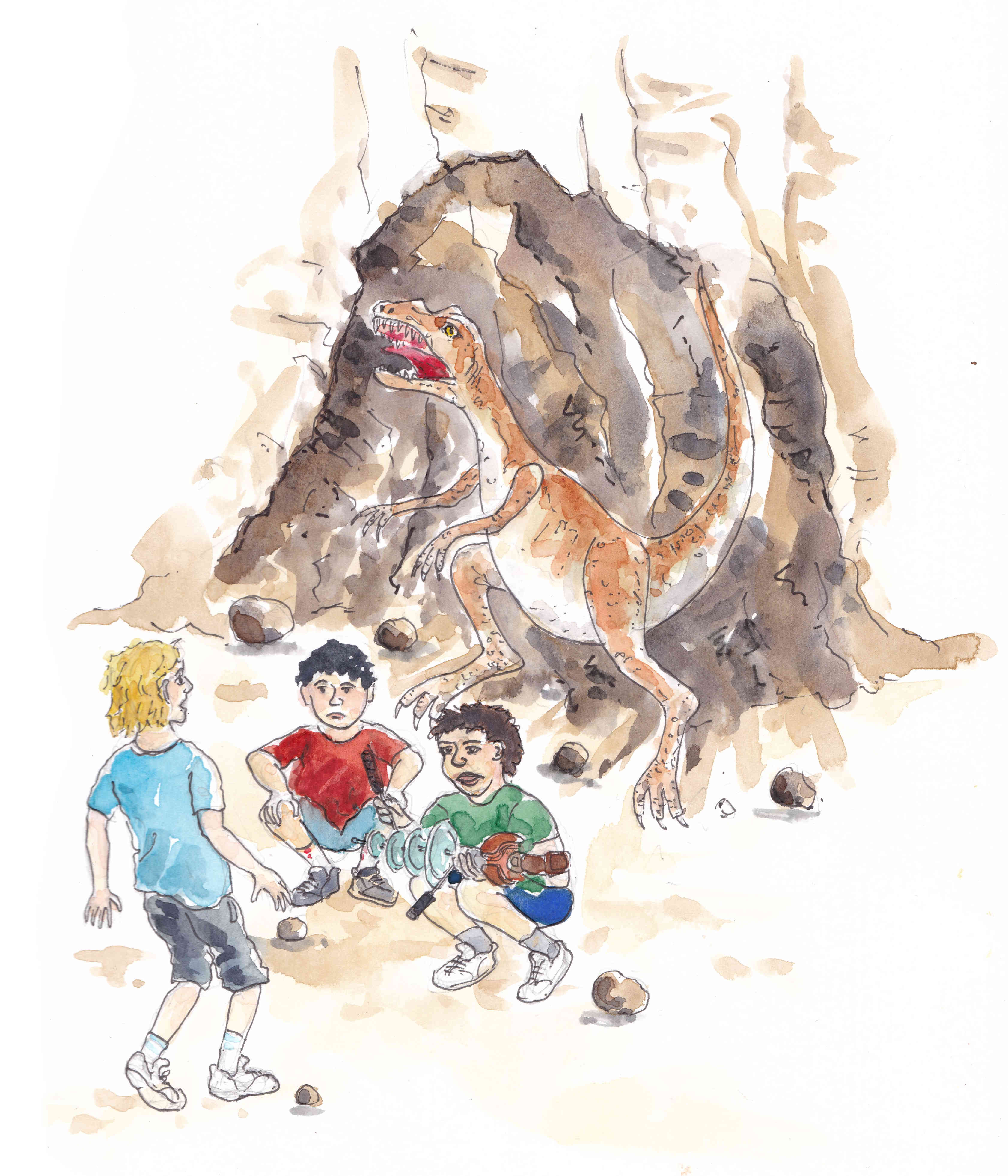 The boys all turned around at this new noise. For Dale and Colin, it was the first time they had seen that they were being pursued and worse, just what it was that was pursuing them. “Aarrggghhh!” all three boys yelled together in terror.